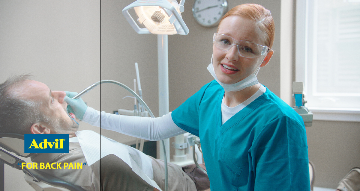 | For Back Pain DIRECTED BY KENNETH YODER PRODUCED BY PATICK RICHTER & ADORA EYE-WILSON WRITTEN BY KENNETH YODER EDITOR BY FELIX PINIERO COMPOSERS VINCE LAWRENCE SOUND DESIGN & MIXING BY PERISCOPE POST & AUDIO PRODUCTION DESIGNER JULIA CARUSILLO COSTUMES JESSI SHEEHAN HAIR / MAKE-UP ANDREA DAVOREN JAIMEE ROSKO DIRECTOR OF PHOTOGRAPHY HERMAN ASPH GAFFER JOESEPH NILSON VFX SUPERVISOR CUTTERS COLOURIST CUTTERS EDITOR EMILY TOLAND LIGHTING ESSANAY CAMERA MAX MOORE COLOUR QURIOSITY PRODUCTIONS